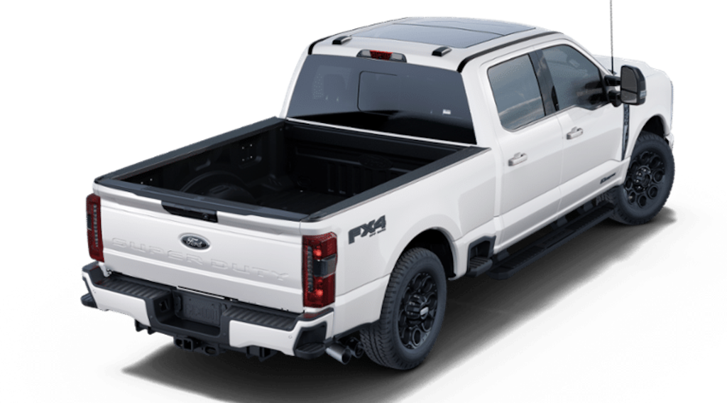 LARIAT ULTIMATE PACKAGE -inc: Pro Trailer Hitch Assist, Ford Co-Pilot 360 Assist 2.0, 360-degree camera, rear view camera and reverse brake assist, Pre-Collision Assist, Automatic Emergency Braking (AEB), pedestrian detection, forward collision warning, dynamic brake support and intersection assist, Post-Collision Braking, Lane-Keeping System, lane-keeping alert, lane-keeping aid and driver alert, Front & Rear Parking Sensors, Automatic High Beam, Adaptive Cruise Control w/Stop-and-Go, lane centering and predictive speed assist, 4-Way Adjustable Headrests, Power-Sliding Rear-Window w/Defrost, Tailgate Step & Handle, Head-Up Display, Power-Deployable Running Boards, Pro Trailer Backup Assist, trailer reverse guidance, Radio: B&O Unleashed Sound System by Bang & Olufsen, HD Radio w/14 speakers including subwoofer, FX4 OFF-ROAD PACKAGE -inc: Hill Descent Control, Off-Road Specifically Tuned Shock Absorbers, front/rear, Transfer Case & Fuel Tank Skid Plates, Unique FX4 Off-Road Box Decal, BLACK APPEARANCE PACKAGE -inc: front and rear black Ford ovals, box side decal (4x4, FX4 or Tremor) and ebony black fender vent surround dark fender badge, Rear Wheel Well Liners (Pre-Installed), Black Painted Front Grille Surround, Ebony Black Painted Mirror Caps, Tough Bed Spray-In Bedliner, tailgate-guard, black box bed tie-down hooks and black bed attachment bolts, Body Color Front & Rear Bumpers, Wheels: 20" Machined & Ebony Black High Gloss, Black premium painted aluminum, gloss black hub cover/center ornament, Tires: LT275/65Rx20E BSW A/T, Spare may not be the same as road tire, 6" Ebony Black Angular Running Boards, 5TH WHEEL/GOOSENECK HITCH PREP PACKAGE -inc: 5 pickup bed attachment points w/plugs, 1 frame under-bed cross member and 1 integrated 7-pin connector on driver's side pickup bed wall, 5th wheel hitch compatibility: the 5th Wheel/Gooseneck Prep Package (53W) is compatible w/the factory orderable 5th Wheel Hitch Kits (15K and 15L) and dealer-installed Ford accessories 5th Wheel Hitch Kit by Reese - part #BC3Z-19D520-A (8ft box only), The prep package is also compatible w/Reese Signature Series 5th wheel hitch kits updated w/a new Leg Service Kit - part #BC3Z-A00A25-A (8ft box only), The 5th Wheel Hitch Kit (15K), 5th Wheel Hitch Kit (15L) and dealer-installed Ford accessories 5th Wheel Hitch Kit by Reese - part #BC3Z-19D520-A is not released to the short box (6.75ft box), Note: the short pickup box provides less clearance between the cab and 5th wheel trailer compared to long box pickups, The receiver centerline of the hitch should be mounted at least 2" forward from the rear-axle of the , STAR WHITE METALLIC TRI-COAT, PRO POWER ONBOARD - 2KW -inc: dual alternators 12V 250 Amp + 24V 150 Amp, ORDER CODE 608A, FRONT LICENSE PLATE BRACKET -inc: Standard in states requiring 2 license plates and optional to all others, ENGINE: 6.7L 4V OHV POWER STROKE V8 TURBO DIESEL B20 -inc: manual push-button engine-exhaust braking and Operator Commanded Regeneration (OCR), 48 Gallon Fuel Tank, 250 Amp Alternator, 3.31 Axle Ratio, Dual AGM 68 AH Battery, ELECTRONIC-LOCKING W/3.31 AXLE RATIO.