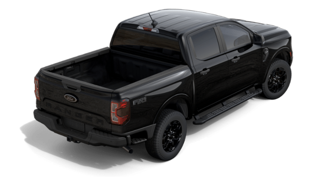 FX4 OFF-ROAD PACKAGE -inc: FX4 Selectable Drive Modes, mud/ruts and sand, Exposed Steel Bash Plate, engine and transfer case shield and fuel tank guard, Electronic-Locking Rear Differential, Off-Road Tuned Shocks, Off-Road Screen in Center Stack, Trail Control, FX4 Off-Road Box Decal, CONVENIENCE PACKAGE -inc: 120V/400W In-Cab & In-Bed Power Outlets, LED bed lighting, Wireless Charging Pad, BLACK APPEARANCE PACKAGE -inc: Black Center Bar & Surround Grille, Unique Carpet Mats, Wheels: 18" Black Painted, Tires: 18", Body-Color Painted Front Fascia, black lower valance, Front & Rear Black Ford Ovals, Black Rear Bumper, Painted Body-Color Wheel Lip Molding, ADVANCED TOWING PACKAGE -inc: Trailer Brake Controller, Trailer Tow Package, towing capability up to TBD lbs and 4-pin/7-pin wiring harness, Class IV Trailer Hitch Receiver, Pro Trailer Backup Assist , FRONT LICENSE PLATE BRACKET -inc: Standard in states where required by law, optional to all others, EQUIPMENT GROUP 301A HIGH -inc: Power-Sliding Rear Window, Dual-Zone Electronic Climate Control (DEATC), 12" Display in Center Stack, ENGINE: 2.3L ECOBOOST -inc: auto start-stop technology (STD), EBONY, CLOTH FRONT HEATED BUCKET SEATS -inc: 10-way power adjustable driver including power lumbar, 8-way power adjustable passenger including power lumbar, flow-through console and floor shift, EBONY, CLOTH FRONT BUCKET SEATS -inc: 8-way manual adjustable driver including lumbar, 6-way manual adjustable passenger, driver and passenger manual reclining seats, flow-through console and floor shift, BLACK RUNNING BOARDS.