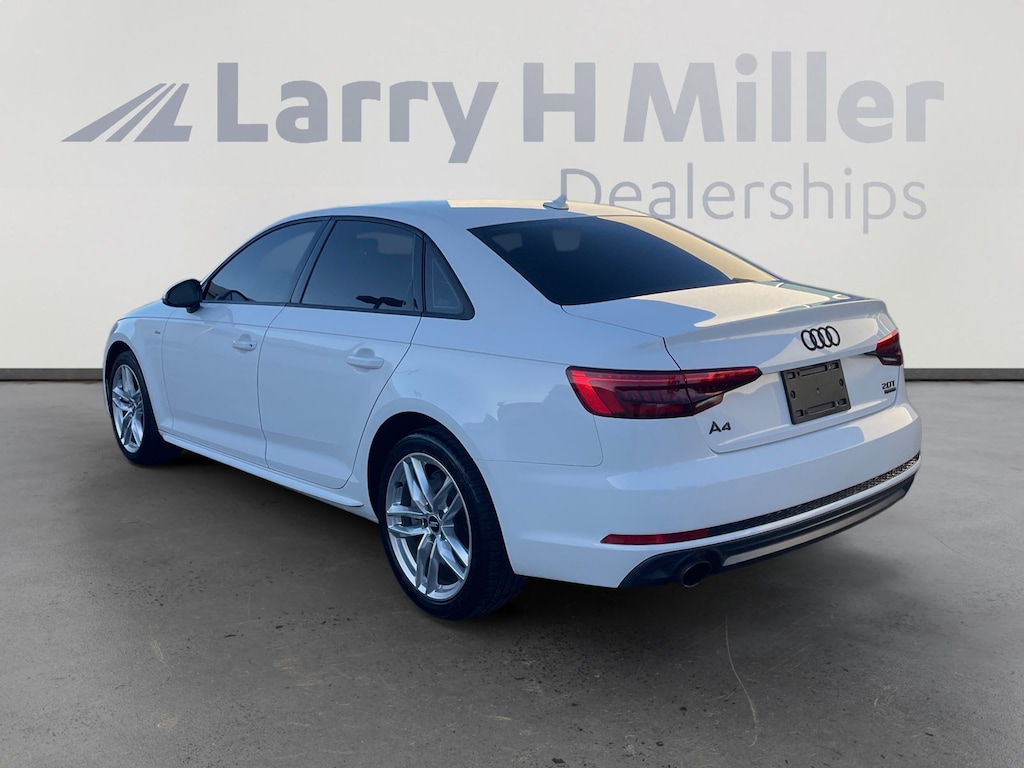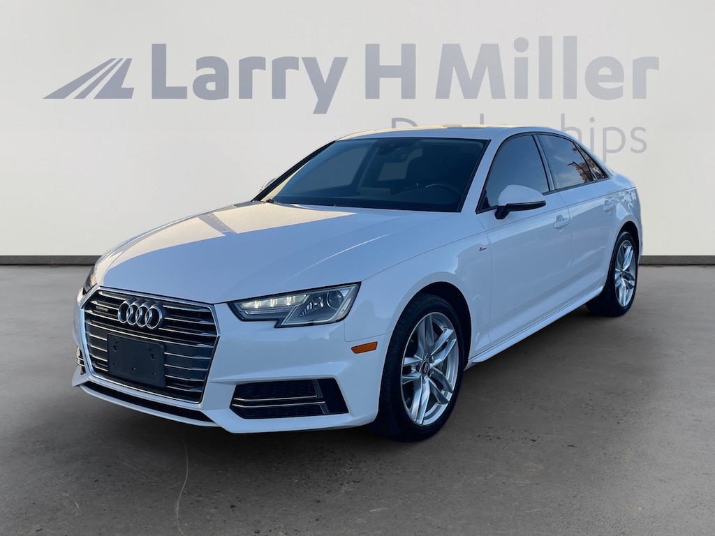 This 2017 Ibis White Audi A4 2.0T AWD is well equipped and includes these features and benefits: Convenience Package (8-Way Power Front Seats w/Driver Memory, Anti-Theft Alarm System w/Immobilizer, Audi Advanced Key, Heated Auto-Dimming Power Exterior Mirrors w/Memory, and SiriusXM Satellite Radio), Season of Audi Selection (Audi Connect PRIME & PLUS and Audi Virtual Cockpit), 7-Speed Automatic S tronic, quattro, Black Leather, Navigation System, Power moonroof, Wheels: 18 5-Arm-Twin-Spoke Design, 10 Speakers, 4-Wheel Disc Brakes, ABS brakes, Air Conditioning, Alloy wheels, AM/FM radio, Anti-whiplash front head restraints, Auto-dimming Rear-View mirror, Automatic temperature control, Brake assist, Bumpers: body-color, CD player, Compass, Delay-off headlights, Driver door bin, Driver vanity mirror, Dual front impact airbags, Dual front side impact airbags, Electronic Stability Control, Exterior Parking Camera Rear, Four wheel independent suspension, Front anti-roll bar, Front Bucket Seats, Front Center Armrest, Front dual zone A/C, Front fog lights, Front reading lights, Garage door transmitter: HomeLink, Heated door mirrors, Heated Front Seats, High intensity discharge headlights: Xenon plus, Illuminated entry, Knee airbag, Leather Seating Surfaces, Leather Shift Knob, Leather steering wheel, Low tire pressure warning, Occupant sensing airbag, Outside temperature display, Overhead airbag, Overhead console, Panic alarm, Passenger door bin, Passenger vanity mirror, Power door mirrors, Power driver seat, Power Front Bucket Seats, Power passenger seat, Power steering, Power windows, Radio data system, Radio: Audi MMI Navigation Plus w/MMI Touch, Rain sensing wipers, Rear air conditioning, Rear anti-roll bar, Rear fog lights, Rear reading lights, Rear seat center armrest, Rear window defroster, Remote keyless entry, Speed control, Speed-sensing steering, Speed-Sensitive Wipers, Split folding rear seat, Steering wheel mounted audio controls, Tachometer, Telescoping steering wheel, Tilt steering wheel, Traction control, Trip computer, Turn signal indicator mirrors, and Variably intermittent wipers. 7-Speed Automatic S tronic, quattro, Black Leather, 8-Way Power Front Seats w/Driver Memory, Anti-Theft Alarm System w/Immobilizer, Audi Advanced Key, Audi Connect PRIME & PLUS, Audi Virtual Cockpit, Convenience Package, Heated Auto-Dimming Power Exterior Mirrors w/Memory, Navigation System, Power moonroof, Season of Audi Selection, SiriusXM Satellite Radio, Wheels: 18 5-Arm-Twin-Spoke Design, 10 Speakers, 4-Wheel Disc Brakes, ABS brakes, Air Conditioning, Alloy wheels, AM/FM radio, Anti-whiplash front head restraints, Auto-dimming Rear-View mirror, Automatic temperature control, Brake assist, Bumpers: body-color, CD player, Compass, Delay-off headlights, Driver door bin, Driver vanity mirror, Dual front impact airbags, Dual front side impact airbags, Electronic Stability Control, Exterior Parking Camera Rear, Four wheel independent suspension, Front anti-roll bar, Front Bucket Seats, Front Center Armrest, Front dual zone A/C, Front fog lights, Front reading lights, Garage door transmitter: HomeLink, Heated door mirrors, Heated Front Seats, High intensity discharge headlights: Xenon plus, Illuminated entry, Knee airbag, Leather Seating Surfaces, Leather Shift Knob, Leather steering wheel, Low tire pressure warning, Occupant sensing airbag, Outside temperature display, Overhead airbag, Overhead console, Panic alarm, Passenger door bin, Passenger vanity mirror, Power door mirrors, Power driver seat, Power Front Bucket Seats, Power passenger seat, Power steering, Power windows, Radio data system, Radio: Audi MMI Navigation Plus w/MMI Touch, Rain sensing wipers, Rear air conditioning, Rear anti-roll bar, Rear fog lights, Rear reading lights, Rear seat center armrest, Rear window defroster, Remote keyless entry, Speed control, Speed-sensing steering, Speed-Sensitive Wipers, Split folding rear seat, Steering wheel mounted audio controls, Tacho