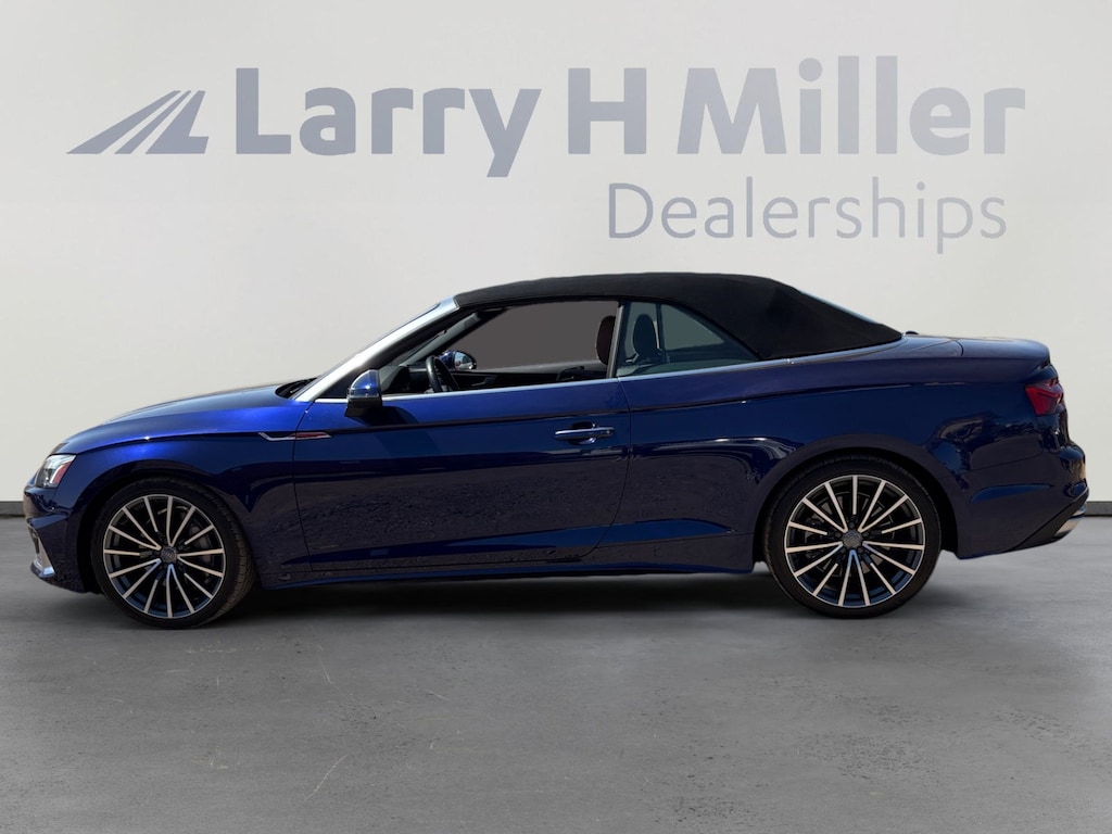 This 2020 Blue Metallic Audi A5 2.0T Premium Plus AWD is well equipped and includes these features and benefits: Convenience Package (Alarm System w/Motion Sensors, Audi Advanced Key, Audi Side Assist w/Pre Sense Rear, Auto-Dimming Exterior Mirrors, Driver Seat Memory, and SiriusXM All Access Service), Premium Plus (Matrix-Design LED Headlights, Parking System Plus (Front/Rear Acoustic Sensors), and Power Folding Exterior Mirrors), quattro, Brown Leather, 10 Speakers, 4-Wheel Disc Brakes, ABS brakes, Air Conditioning, Alloy wheels, AM/FM radio, Anti-whiplash front head restraints, Audi Cargo Box, Audi smartphone interface (Apple CarPlay/Android Auto), Auto High-beam Headlights, Auto-dimming Rear-View mirror, Automatic temperature control, Bang & Olufsen Sound System w/3D Sound, Brake assist, Bumpers: body-color, Compass, Convertible roof lining, Convertible roof wind blocker, Delay-off headlights, Driver door bin, Driver vanity mirror, Dual front impact airbags, Dual front side impact airbags, Electronic Stability Control, Emergency communication system: Audi connect CARE, Exterior Parking Camera Rear, Four wheel independent suspension, Front anti-roll bar, Front Bucket Seats, Front Center Armrest, Front dual zone A/C, Front fog lights, Front reading lights, Garage door transmitter: HomeLink, Genuine wood console insert, Genuine wood door panel insert, Glass rear window, Heated door mirrors, Heated Front Bucket Seats, Heated front seats, Illuminated entry, Integrated roll-over protection, Knee airbag, Leather Seating Surfaces, Leather Shift Knob, Leather steering wheel, Low tire pressure warning, Occupant sensing airbag, Outside temperature display, Panic alarm, Passenger door bin, Passenger vanity mirror, Power adjustable front head restraints, Power convertible roof, Power door mirrors, Power driver seat, Power passenger seat, Power steering, Power windows, Radio data system, Radio: Audi Sound System, Rain sensing wipers, Rear air conditioning, Rear anti-roll bar, Rear reading lights, Rear window defroster, Remote keyless entry, Rings Audi Beam, Speed control, Speed-sensing steering, Speed-Sensitive Wipers, Split folding rear seat, Steering wheel mounted audio controls, Tachometer, Telescoping steering wheel, Tilt steering wheel, Traction control, Trip computer, Turn signal indicator mirrors, Variably intermittent wipers, Wheels: 18 5-V-Spoke-Y Design, and Wheels: 19 Multispoke Design Bi-Color Finish. quattro, Brown Leather, 10 Speakers, 4-Wheel Disc Brakes, ABS brakes, Air Conditioning, Alarm System w/Motion Sensors, Alloy wheels, AM/FM radio, Anti-whiplash front head restraints, Audi Advanced Key, Audi Cargo Box, Audi Side Assist w/Pre Sense Rear, Audi smartphone interface (Apple CarPlay/Android Auto), Auto High-beam Headlights, Auto-Dimming Exterior Mirrors, Auto-dimming Rear-View mirror, Automatic temperature control, Bang & Olufsen Sound System w/3D Sound, Brake assist, Bumpers: body-color, Compass, Convenience Package, Convertible roof lining, Convertible roof wind blocker, Delay-off headlights, Driver door bin, Driver Seat Memory, Driver vanity mirror, Dual front impact airbags, Dual front side impact airbags, Electronic Stability Control, Emergency communication system: Audi connect CARE, Exterior Parking Camera Rear, Four wheel independent suspension, Front anti-roll bar, Front Bucket Seats, Front Center Armrest, Front dual zone A/C, Front fog lights, Front reading lights, Garage door transmitter: HomeLink, Genuine wood console insert, Genuine wood door panel insert, Glass rear window, Heated door mirrors, Heated Front Bucket Seats, Heated front seats, Illuminated entry, Integrated roll-over protection, Knee airbag, Leather Seating Surfaces, Leather Shift Knob, Leather steering wheel, Low tire pressure warning, Matrix-Design LED Headlights, Occupant sensing airbag, Outside temperature display, Panic alarm, Parking System Plus (Front/Rear Acoustic Sensors), Passenger door bin, Passenger vanity mirror, Power adjusta