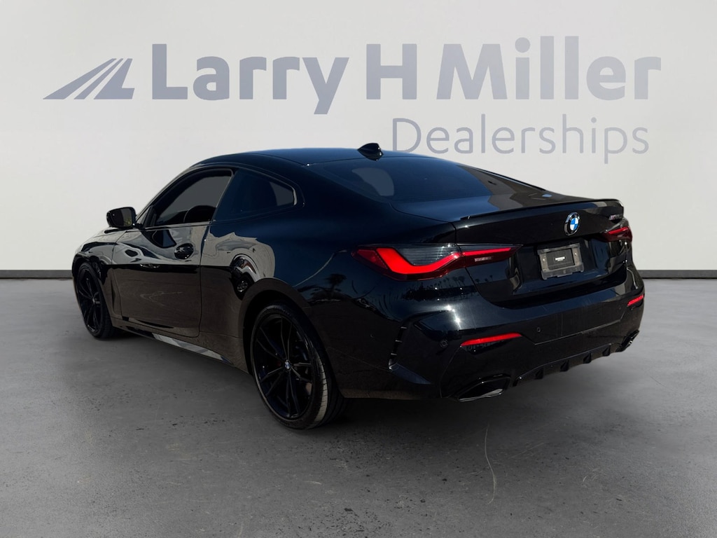 This 2023 Black Sapphire Metallic BMW 4 Series M440i RWD is well equipped and includes these features and benefits: Connected Package Pro, M Sport Package Pro, Parking Assistance Package (Active Park Distance Control, Parking Assistant Plus, Rear-View Camera, and Surround View w/3D View), Premium Package (Head-Up Display, Heated Front Seats, Heated Steering Wheel, and Live Cockpit Pro w/Navi), Shadowline Package (Black Mirror Caps, Extended Shadowline Trim, M Shadowline Lights, and M Sport Brakes w/Red Calipers), 10 Speakers, 4-Wheel Disc Brakes, ABS brakes, Air Conditioning, Alloy wheels, AM/FM Radio, AM/FM radio: SiriusXM, Apple CarPlay & Android Auto Compatibility, Auto High-beam Headlights, Auto-dimming door mirrors, Auto-dimming Rear-View mirror, Automatic temperature control, BMW Assist eCall, BMW TeleServices, Brake assist, Bumpers: body-color, Compass, ConnectedDrive Services, Delay-off headlights, Driver door bin, Driver Lumbar Support, Driver vanity mirror, Dual front impact airbags, Dual front side impact airbags, Electronic Stability Control, Emergency communication system: BMW Assist eCall, Enhanced USB & Bluetooth w/Smartphone Integration, Exterior Parking Camera Rear, Fine Wood Trim w/Ash Gray-Brown High Gloss, Four wheel independent suspension, Front anti-roll bar, Front Bucket Seats, Front Center Armrest, Front dual zone A/C, Front reading lights, Fully automatic headlights, Garage door transmitter, harman/kardon Surround Sound System, Heated door mirrors, Hi-Fi Sound System, Icon Adaptive LED Headlights w/Laserlight, Illuminated entry, Increased Top Speed Limiter, Knee airbag, Low tire pressure warning, Memory seat, Navigation, Navigation System, Occupant sensing airbag, Outside temperature display, Overhead airbag, Overhead console, Panic alarm, Passenger door bin, Passenger vanity mirror, Perforated SensaTec Upholstery, Power door mirrors, Power driver seat, Power Front Seats, Power moonroof, Power passenger seat, Power steering, Power windows, Radio data system, Rain sensing wipers, Rear air conditioning, Rear anti-roll bar, Rear reading lights, Rear seat center armrest, Rear window defroster, Remote keyless entry, Security system, SiriusXM Satellite Radio, Speed control, Speed-sensing steering, Speed-Sensitive Wipers, Split folding rear seat, Spoiler, Sport Seats, Sport steering wheel, Steering wheel mounted audio controls, Tachometer, Telescoping steering wheel, Tilt steering wheel, Traction control, Trip computer, Turn signal indicator mirrors, Variably intermittent wipers, Wheels: 18 x 7.5 Fr & 18 x 8.5 Rr M Dbl-Spoke, and Wheels: 19 x 8 Fr & 19 x 8.5 Rr (Style 791M) 10 Speakers, 4-Wheel Disc Brakes, ABS brakes, Active Park Distance Control, Air Conditioning, Alloy wheels, AM/FM Radio, AM/FM radio: SiriusXM, Apple CarPlay & Android Auto Compatibility, Auto High-beam Headlights, Auto-dimming door mirrors, Auto-dimming Rear-View mirror, Automatic temperature control, Black Mirror Caps, BMW Assist eCall, BMW TeleServices, Brake assist, Bumpers: body-color, Compass, Connected Package Pro, ConnectedDrive Services, Delay-off headlights, Driver door bin, Driver Lumbar Support, Driver vanity mirror, Dual front impact airbags, Dual front side impact airbags, Electronic Stability Control, Emergency communication system: BMW Assist eCall, Enhanced USB & Bluetooth w/Smartphone Integration, Extended Shadowline Trim, Exterior Parking Camera Rear, Fine Wood Trim w/Ash Gray-Brown High Gloss, Four wheel independent suspension, Front anti-roll bar, Front Bucket Seats, Front Center Armrest, Front dual zone A/C, Front reading lights, Fully automatic headlights, Garage door transmitter, harman/kardon Surround Sound System, Head-Up Display, Heated door mirrors, Heated Front Seats, Heated Steering Wheel, Hi-Fi Sound System, Icon Adaptive LED Headlights w/Laserlight, Illuminated entry, Increased Top Speed Limiter, Knee airbag, Live Cockpit Pro w/Navi, Low tire pressure warning, M Shadowline Lights, M Sport Brakes w/Re