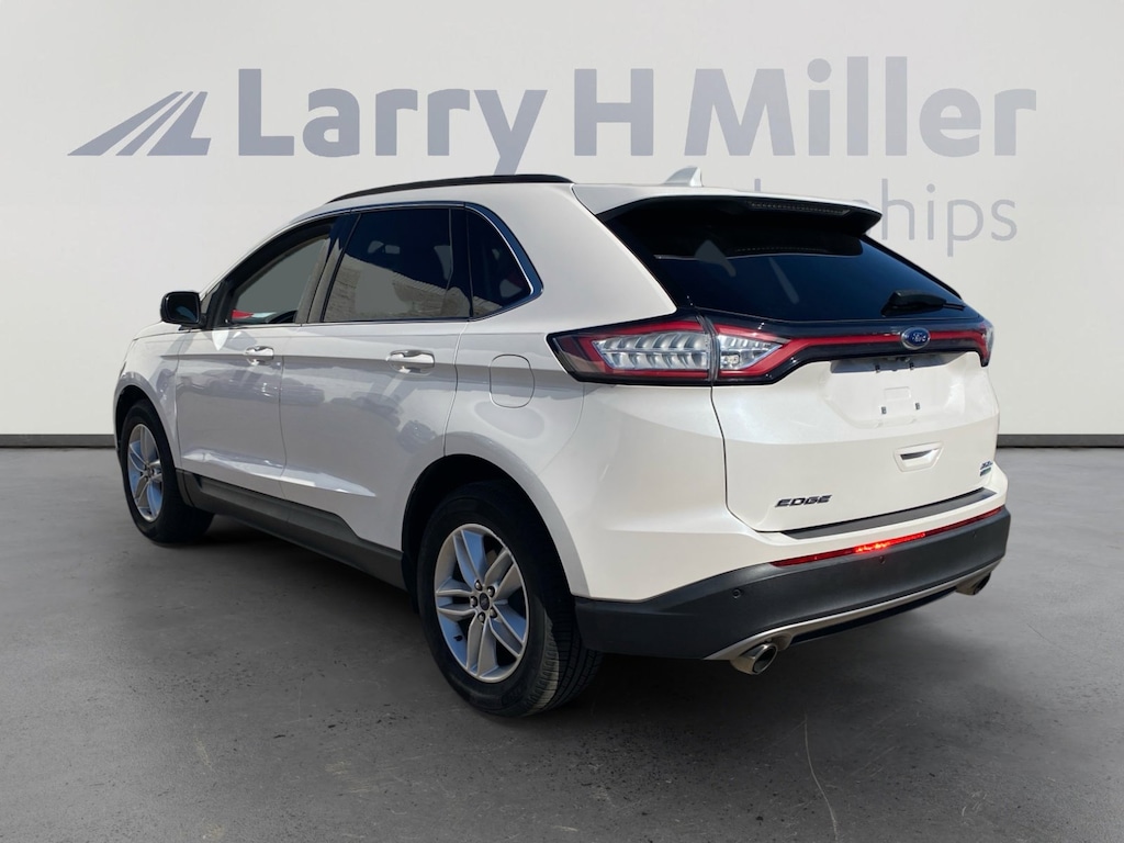 This 2016 White Platinum Metallic Tri-Coat Ford Edge SEL FWD is well equipped and includes these features and benefits: 4-Wheel Disc Brakes, 6 Speakers, ABS brakes, Air Conditioning, Alloy wheels, AM/FM radio: SiriusXM, AM/FM Stereo w/Single CD, Auto-dimming Rear-View mirror, Automatic temperature control, Axle Ratio: 3.16, Brake assist, Bumpers: body-color, CD player, Compass, Delay-off headlights, Driver door bin, Driver vanity mirror, Dual front impact airbags, Dual front side impact airbags, Electronic Stability Control, Emergency communication system, Exterior Parking Camera Rear, Four wheel independent suspension, Front anti-roll bar, Front Bucket Seats, Front Center Armrest w/Storage, Front dual zone A/C, Front reading lights, Fully automatic headlights, Heated door mirrors, Illuminated entry, Knee airbag, Leather Shift Knob, Low tire pressure warning, Occupant sensing airbag, Outside temperature display, Overhead airbag, Overhead console, Panic alarm, Passenger door bin, Passenger vanity mirror, Power door mirrors, Power driver seat, Power passenger seat, Power steering, Power windows, Rear anti-roll bar, Rear Parking Sensors, Rear reading lights, Rear seat center armrest, Rear window defroster, Rear window wiper, Remote keyless entry, SiriusXM Radio, Speed control, Speed-Sensitive Wipers, Split folding rear seat, Spoiler, Steering wheel mounted audio controls, SYNC, Tachometer, Telescoping steering wheel, Tilt steering wheel, Traction control, Trip computer, Turn signal indicator mirrors, Unique Cloth Bucket Seats, Variably intermittent wipers, and Wheels: 18 Aluminum Painted Sparkle Silver. 4-Wheel Disc Brakes, 6 Speakers, ABS brakes, Air Conditioning, Alloy wheels, AM/FM radio: SiriusXM, AM/FM Stereo w/Single CD, Auto-dimming Rear-View mirror, Automatic temperature control, Axle Ratio: 3.16, Brake assist, Bumpers: body-color, CD player, Compass, Delay-off headlights, Driver door bin, Driver vanity mirror, Dual front impact airbags, Dual front side impact airbags, Electronic Stability Control, Emergency communication system, Exterior Parking Camera Rear, Four wheel independent suspension, Front anti-roll bar, Front Bucket Seats, Front Center Armrest w/Storage, Front dual zone A/C, Front reading lights, Fully automatic headlights, Heated door mirrors, Illuminated entry, Knee airbag, Leather Shift Knob, Low tire pressure warning, Occupant sensing airbag, Outside temperature display, Overhead airbag, Overhead console, Panic alarm, Passenger door bin, Passenger vanity mirror, Power door mirrors, Power driver seat, Power passenger seat, Power steering, Power windows, Rear anti-roll bar, Rear Parking Sensors, Rear reading lights, Rear seat center armrest, Rear window defroster, Rear window wiper, Remote keyless entry, SiriusXM Radio, Speed control, Speed-Sensitive Wipers, Split folding rear seat, Spoiler, Steering wheel mounted audio controls, SYNC, Tachometer, Telescoping steering wheel, Tilt steering wheel, Traction control, Trip computer, Turn signal indicator mirrors, Unique Cloth Bucket Seats, Variably intermittent wipers, Wheels: 18 Aluminum Painted Sparkle Silver.