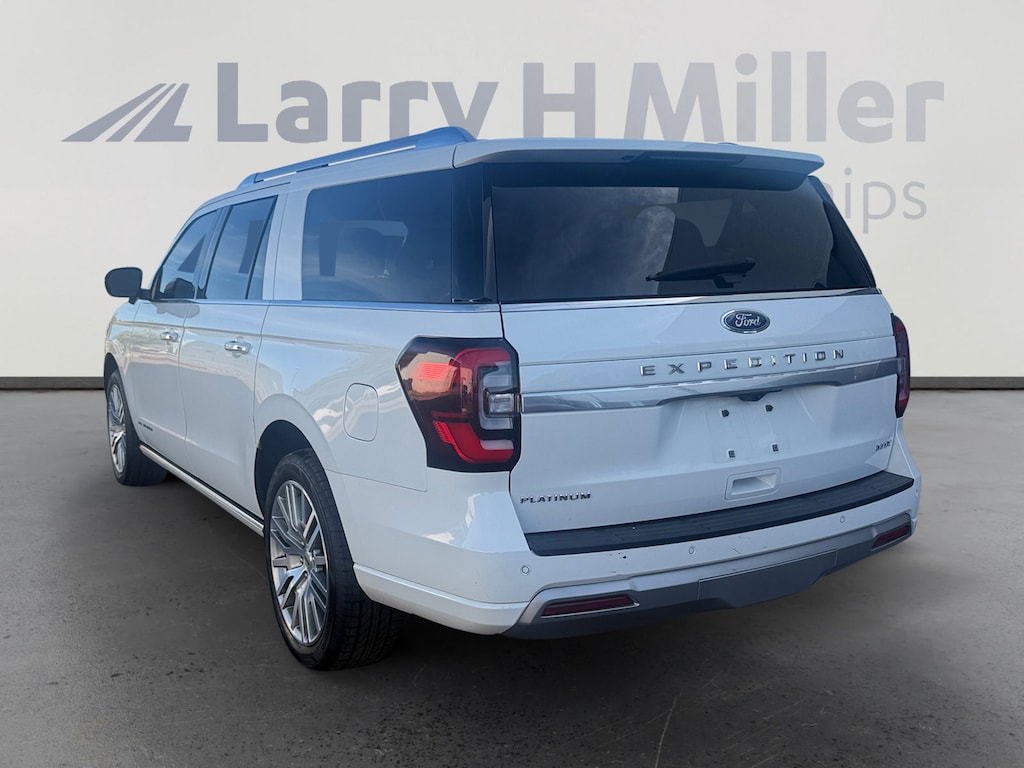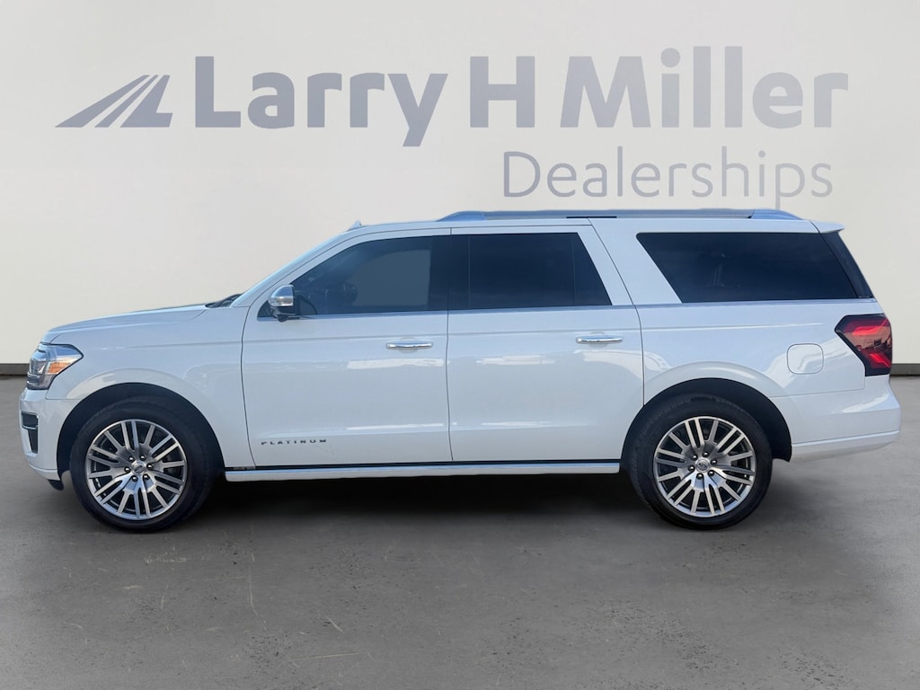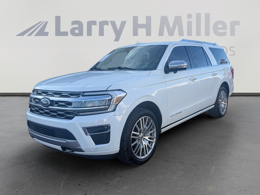 This 2023 Star White Metallic Tri-Coat Ford Expedition Max Platinum 4WD is well equipped and includes these features and benefits: Equipment Group 600A Standard Package, Heavy-Duty Trailer Tow Package (26mm Engine Radiator, 360-Degree Camera w/Trailer Reverse Guidance, Integrated Trailer Brake Controller, and Pro Trailer Backup Assist), 22 Speakers, 3rd row seats: split-bench, 4-Wheel Disc Brakes, ABS brakes, Active Park Assist 2.0 Removal, Adaptive suspension, Adjustable pedals, Air Conditioning, Alloy wheels, AM/FM radio: SiriusXM with 360L, Auto High-beam Headlights, Auto-dimming door mirrors, Auto-dimming Rear-View mirror, Automatic temperature control, Brake assist, Bumpers: body-color, Compass, Continuous Controlled Damping (CCD), Delay-off headlights, Driver door bin, Driver vanity mirror, Dual front impact airbags, Dual front side impact airbags, Electronic Stability Control, Emergency communication system: SYNC 4 911 Assist, Exterior Parking Camera Rear, Four wheel independent suspension, Front anti-roll bar, Front Bucket Seats, Front Center Armrest, Front dual zone A/C, Front fog lights, Front reading lights, Fully automatic headlights, Garage door transmitter, Genuine wood console insert, Genuine wood dashboard insert, Genuine wood door panel insert, Hands-Free Foot-Activated Liftgate Removal (DISC), Heated door mirrors, Heated front seats, Heated rear seats, Heated steering wheel, Htd/Ventilated Prem Lthr Front Captain's Chairs (DISC), Illuminated entry, Leather steering wheel, Low tire pressure warning, Memory seat, Navigation system: Connected Navigation, Occupant sensing airbag, Outside temperature display, Overhead airbag, Overhead console, Panic alarm, Passenger door bin, Passenger vanity mirror, Pedal memory, Power door mirrors, Power driver seat, Power Liftgate, Power moonroof, Power passenger seat, Power steering, Power windows, Radio data system, Radio: B&O Unleashed Sound System by Bang & Olufsen, Rain sensing wipers, Rear air conditioning, Rear anti-roll bar, Rear audio controls, Rear reading lights, Rear window defroster, Rear window wiper, Reclining 3rd row seat, Remote keyless entry, Second Row Power Windows Removal, Security system, SiriusXM w/360L, Speed control, Speed-sensing steering, Speed-Sensitive Wipers, Split folding rear seat, Spoiler, Steering wheel memory, Steering wheel mounted audio controls, SYNC 4 w/Enhanced Voice Recognition, Tachometer, Telescoping steering wheel, Tilt steering wheel, Traction control, Trip computer, Turn signal indicator mirrors, Variably intermittent wipers, Ventilated front seats, Voltmeter, and Wheels: 22 12-Spoke Polished Aluminum. 22 Speakers, 26mm Engine Radiator, 360-Degree Camera w/Trailer Reverse Guidance, 3rd row seats: split-bench, 4-Wheel Disc Brakes, ABS brakes, Active Park Assist 2.0 Removal, Adaptive suspension, Adjustable pedals, Air Conditioning, Alloy wheels, AM/FM radio: SiriusXM with 360L, Auto High-beam Headlights, Auto-dimming door mirrors, Auto-dimming Rear-View mirror, Automatic temperature control, Brake assist, Bumpers: body-color, Compass, Continuous Controlled Damping (CCD), Delay-off headlights, Driver door bin, Driver vanity mirror, Dual front impact airbags, Dual front side impact airbags, Electronic Stability Control, Emergency communication system: SYNC 4 911 Assist, Equipment Group 600A Standard Package, Exterior Parking Camera Rear, Four wheel independent suspension, Front anti-roll bar, Front Bucket Seats, Front Center Armrest, Front dual zone A/C, Front fog lights, Front reading lights, Fully automatic headlights, Garage door transmitter, Genuine wood console insert, Genuine wood dashboard insert, Genuine wood door panel insert, Hands-Free Foot-Activated Liftgate Removal (DISC), Heated door mirrors, Heated front seats, Heated rear seats, Heated steering wheel, Heavy-Duty Trailer Tow Package, Htd/Ventilated Prem Lthr Front Captain's Chairs (DISC), Illuminated entry, Integrated Trailer Brake Controller, Leather steering wheel, Low