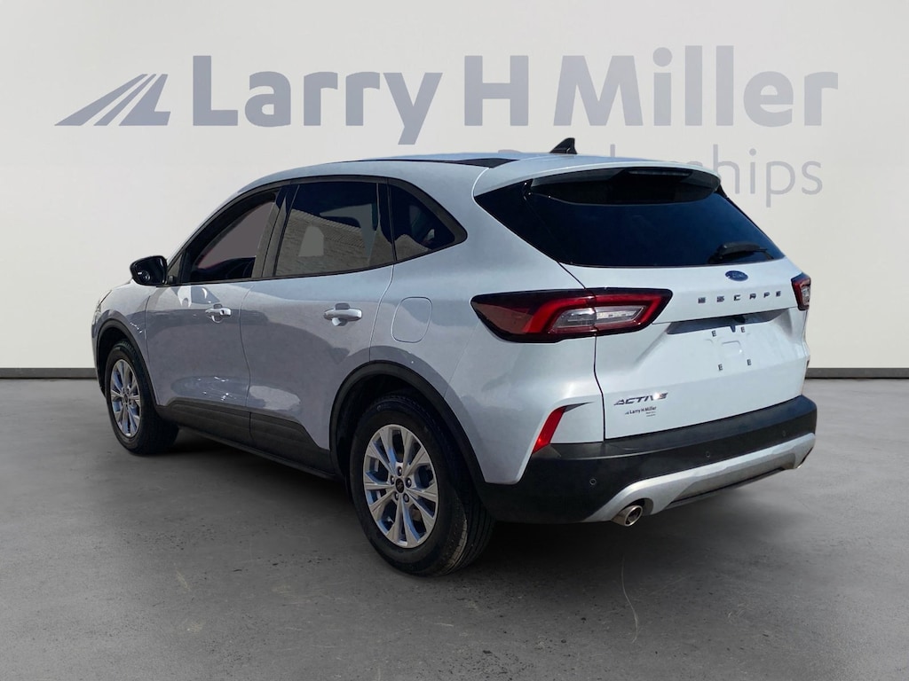 This 2025 Silver Metallic Ford Escape Active FWD is well equipped and includes these features and benefits: Equipment Group 200A, Tech Pack #1 (Adaptive Cruise Control w/Stop-and-Go, Connected Navigation, Ford Co-Pilot360 Assist+, Intersection Assist, Predictive Speed Assist, Rear Parking Sensor, Rear-View Camera, and SYNC 4 w/Enhanced Voice Recognition), 3.81 Axle Ratio, 4-Wheel Disc Brakes, 6 Speakers, ABS brakes, Air Conditioning, Alloy wheels, AM/FM radio: SiriusXM, AM/FM Stereo, Auto High-beam Headlights, Automatic temperature control, Brake assist, Bumpers: body-color, Compass, Delay-off headlights, Driver door bin, Driver vanity mirror, Dual front impact airbags, Dual front side impact airbags, Electronic Stability Control, Emergency communication system: SYNC 4 911 Assist, FordPass Connect, Four wheel independent suspension, Front anti-roll bar, Front Bucket Seats, Front Center Armrest, Front dual zone A/C, Front reading lights, Fully automatic headlights, Illuminated entry, Knee airbag, Low tire pressure warning, Occupant sensing airbag, Outside temperature display, Overhead airbag, Overhead console, Panic alarm, Passenger door bin, Passenger vanity mirror, Power door mirrors, Power Liftgate, Power steering, Power windows, Radio data system, Rear anti-roll bar, Rear reading lights, Rear seat center armrest, Rear window defroster, Rear window wiper, Remote keyless entry, Speed control, Speed-sensing steering, Speed-Sensitive Wipers, Split folding rear seat, Spoiler, Steering wheel mounted audio controls, SYNC 4, Tachometer, Telescoping steering wheel, Tilt steering wheel, Traction control, Trip computer, Unique Cloth Front Bucket Seats, Variably intermittent wipers, and Wheels: 17 Shadow Silver-Painted Aluminum. 3.81 Axle Ratio, 4-Wheel Disc Brakes, 6 Speakers, ABS brakes, Adaptive Cruise Control w/Stop-and-Go, Air Conditioning, Alloy wheels, AM/FM radio: SiriusXM, AM/FM Stereo, Auto High-beam Headlights, Automatic temperature control, Brake assist, Bumpers: body-color, Compass, Connected Navigation, Delay-off headlights, Driver door bin, Driver vanity mirror, Dual front impact airbags, Dual front side impact airbags, Electronic Stability Control, Emergency communication system: SYNC 4 911 Assist, Equipment Group 200A, Ford Co-Pilot360 Assist+, FordPass Connect, Four wheel independent suspension, Front anti-roll bar, Front Bucket Seats, Front Center Armrest, Front dual zone A/C, Front reading lights, Fully automatic headlights, Illuminated entry, Intersection Assist, Knee airbag, Low tire pressure warning, Occupant sensing airbag, Outside temperature display, Overhead airbag, Overhead console, Panic alarm, Passenger door bin, Passenger vanity mirror, Power door mirrors, Power Liftgate, Power steering, Power windows, Predictive Speed Assist, Radio data system, Rear anti-roll bar, Rear Parking Sensor, Rear reading lights, Rear seat center armrest, Rear window defroster, Rear window wiper, Rear-View Camera, Remote keyless entry, Speed control, Speed-sensing steering, Speed-Sensitive Wipers, Split folding rear seat, Spoiler, Steering wheel mounted audio controls, SYNC 4, SYNC 4 w/Enhanced Voice Recognition, Tachometer, Tech Pack #1, Telescoping steering wheel, Tilt steering wheel, Traction control, Trip computer, Unique Cloth Front Bucket Seats, Variably intermittent wipers, Wheels: 17 Shadow Silver-Painted Aluminum.